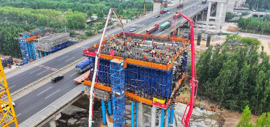 京台高速齐济段改扩建项目上跨京沪三四线转体桥右幅0#块浇筑顺利完成